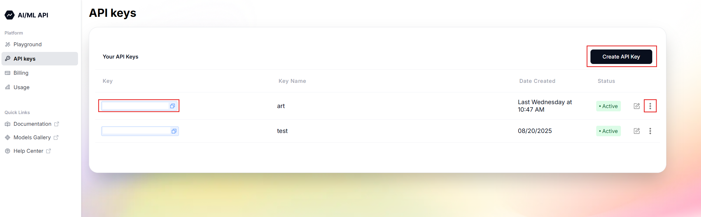 This article provides a detailed overview of the Personal Account sections on aimlapi.com.